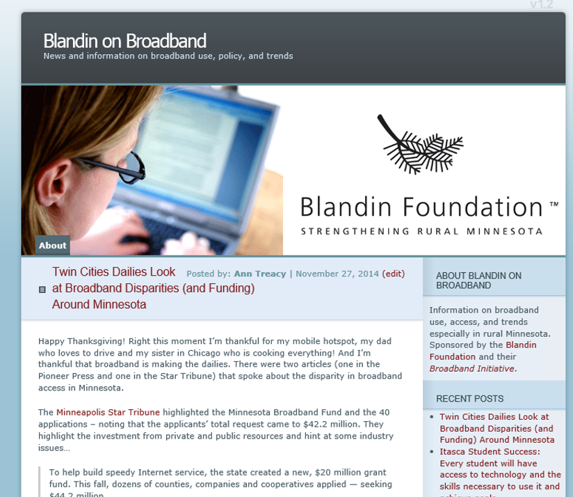 - Blandin on Broadband – nearly daily articles on technology in Minnesota